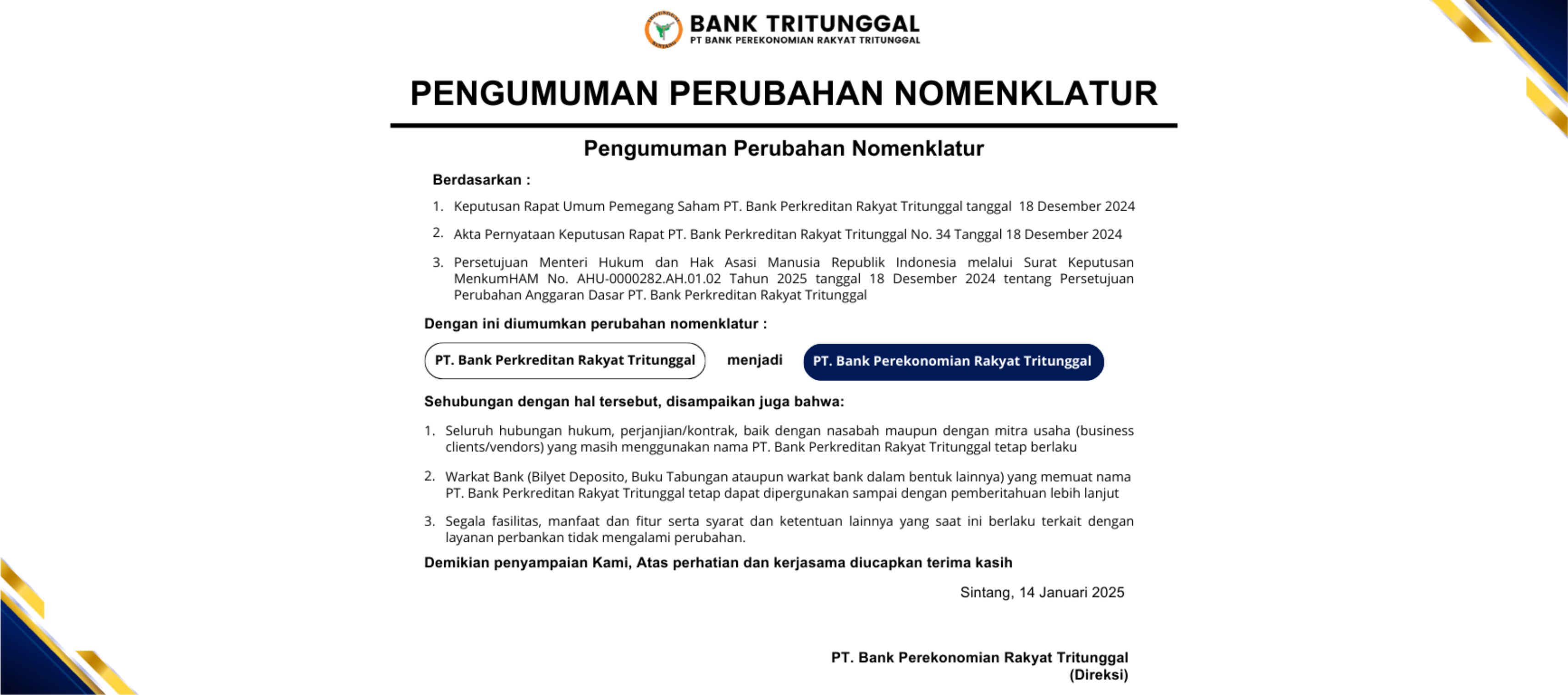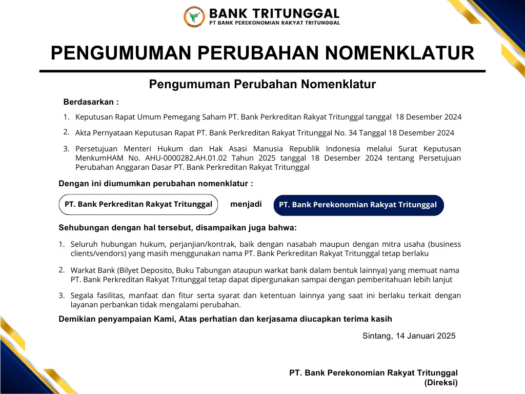 - Menciptakan image yang baik sebagai PT. Bank Perekonomian Rakyat Tritunggal yang dapat dipercaya dan diandalkan oleh semua pihak.